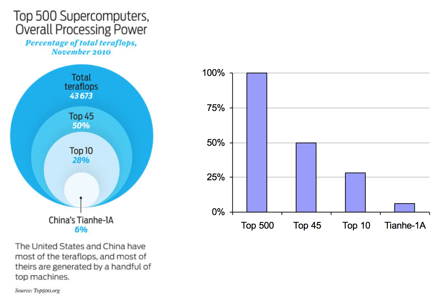 How did you do? I’m guessing that the circle was not as big as you thought. That is the problem with using area to represent values: It is difficult to determine the linear relationship between relative areas. In contrast, it is easy to determine the relative distance of bar charts, which are a much more effective display.
