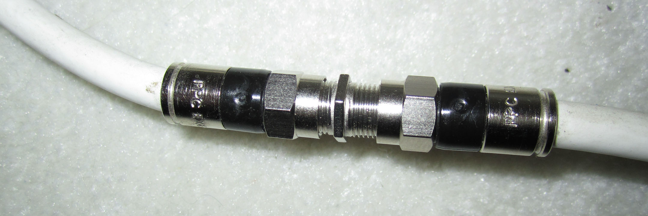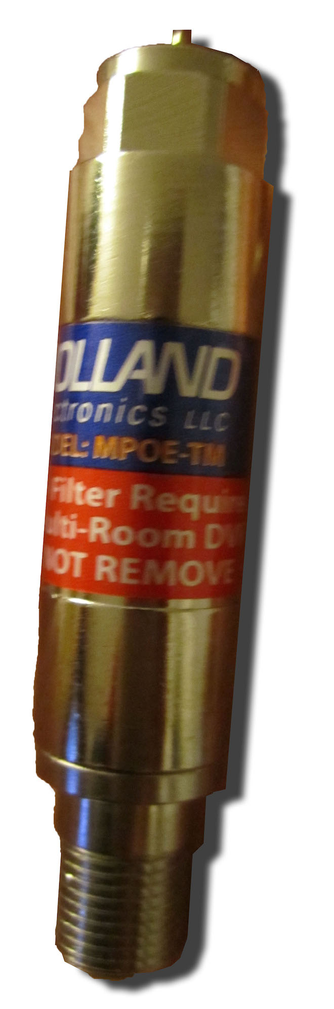 A simple solution to all of these problems is to install a POE filter, pictured at right. POE stands for “point of entry,” and as the name implies it is installed at the cable’s point of entry we identified earlier. The POE filter passes the cable TV signal through but blocks your MoCA network signal from leaking out to the main line as well as block other network signals from leaking in.